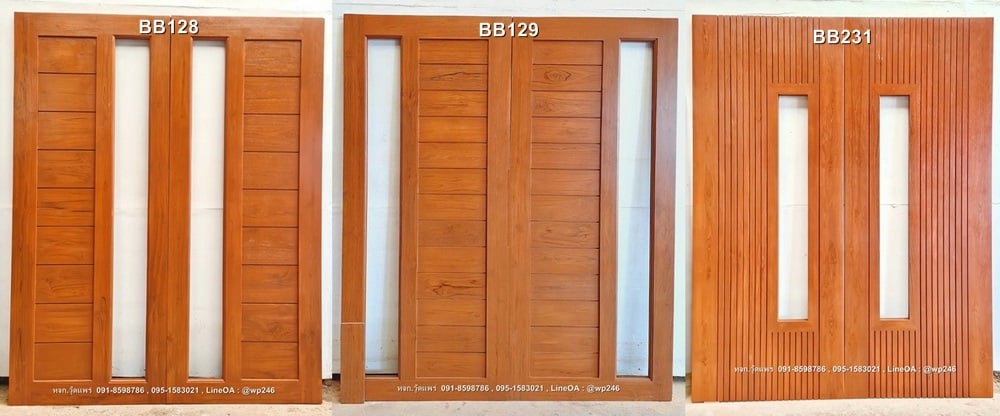 ประตูไม้สักบานเลื่อนโมเดิร์น รหัส BB243