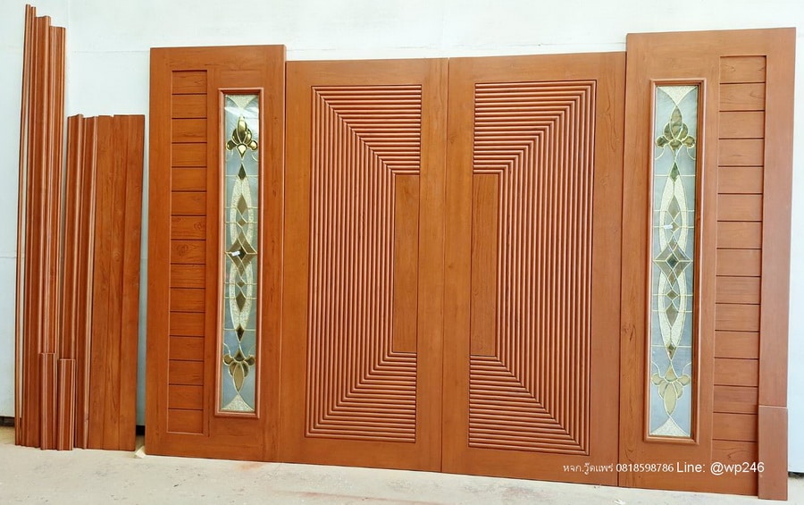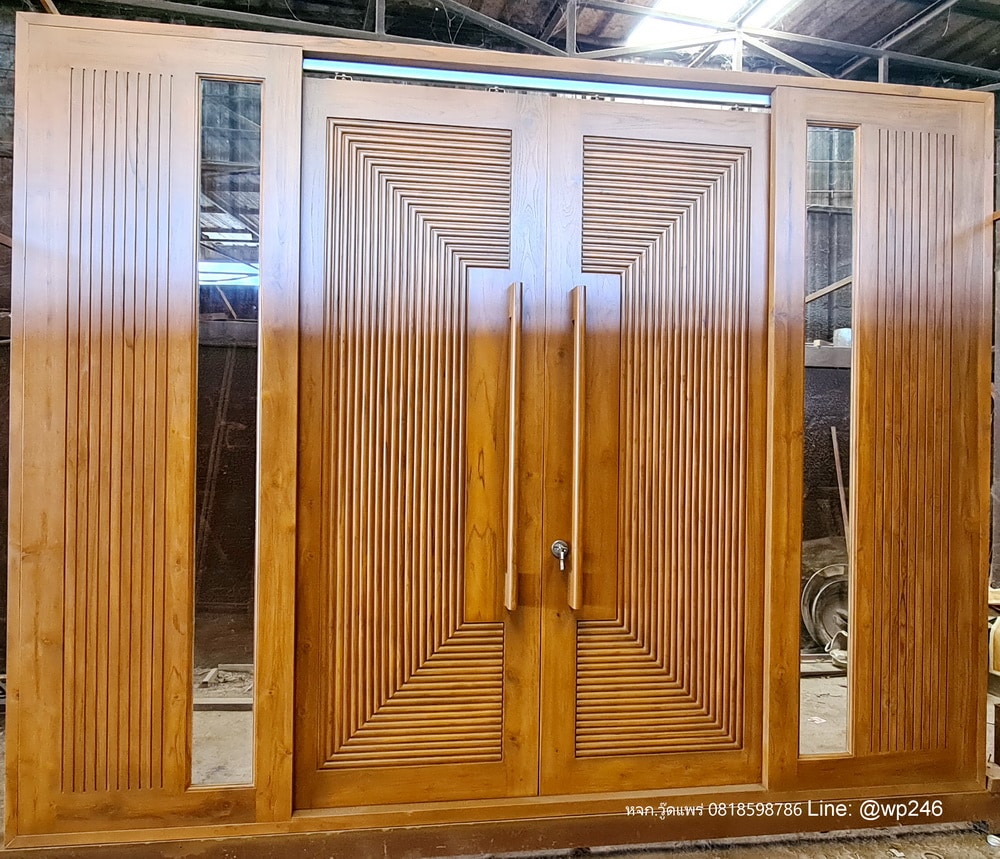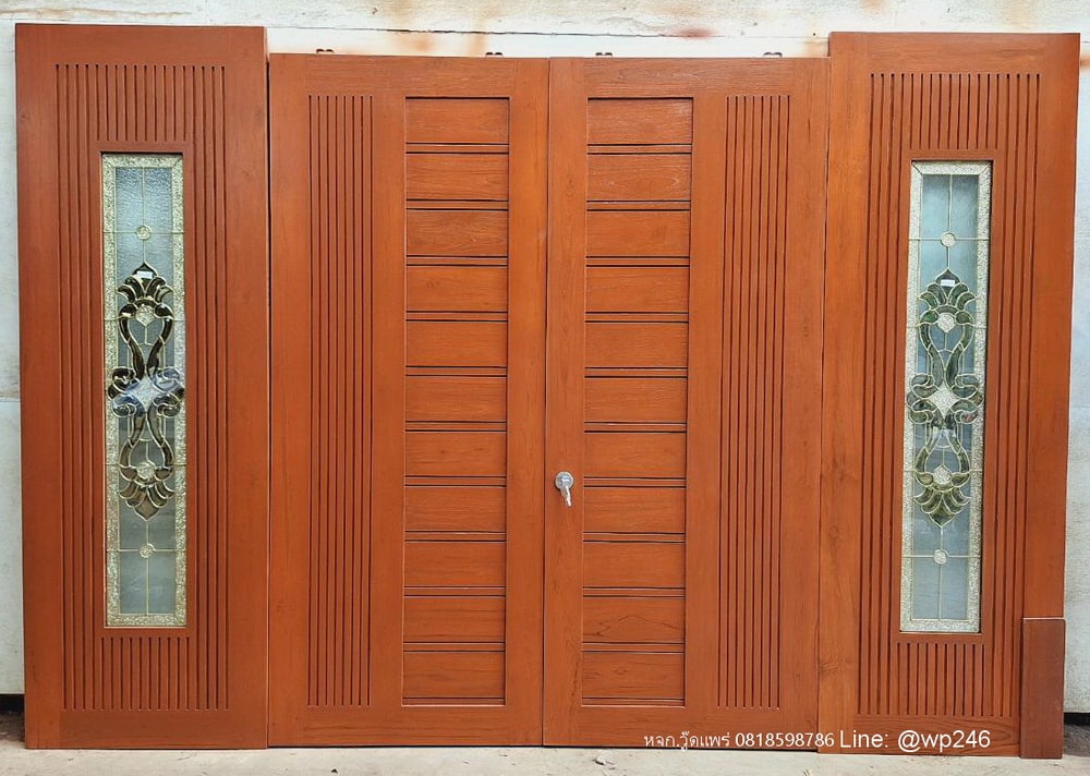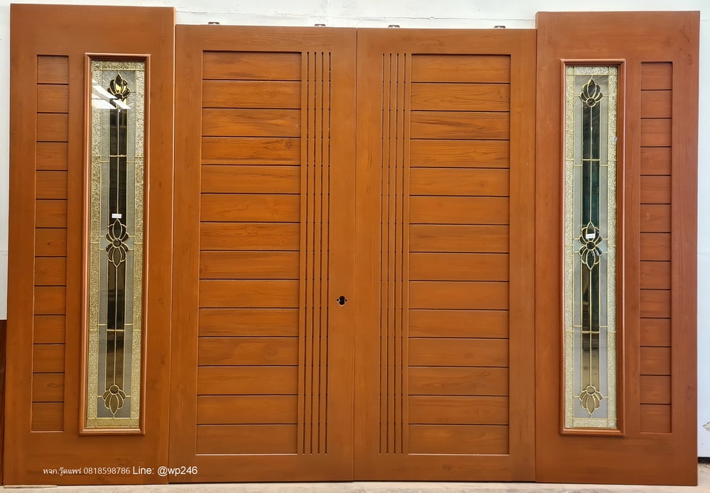 แบบประตูไม้หน้าบ้านสวยๆ 90×220 ซม. คู่ข้าง 80×220 ซม