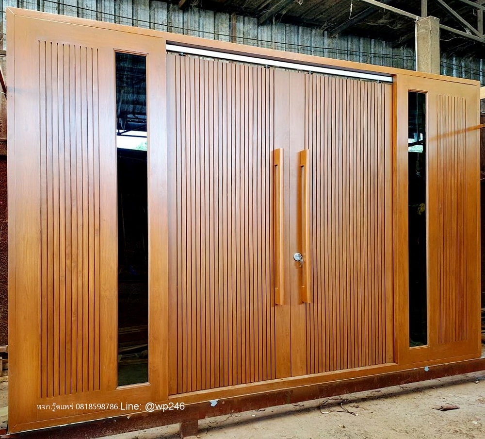 ประตูไม้หน้าบ้านบานเลื่อน ราคา 43,800 บาท ทั้งชุด