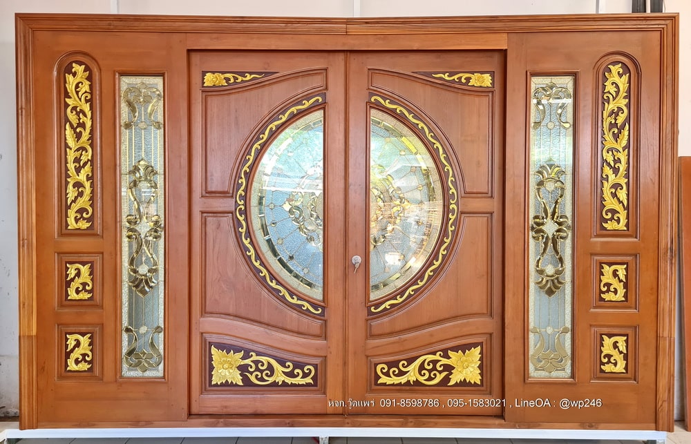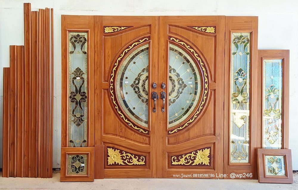 ประตูไม้หน้าบ้านแกะสลัก บานคู่