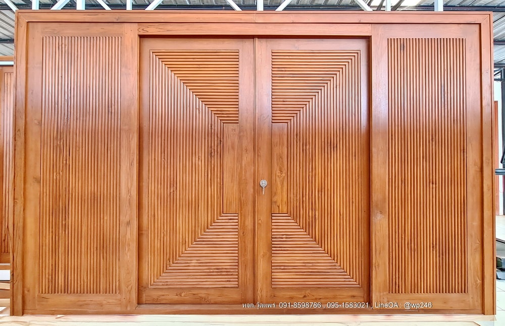 ประตูโมเดิร์นไม้สักบานคู่