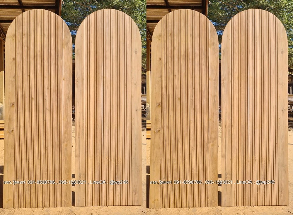 ประตูไม้สัก แปะไม้ซี่ยาวโชว์ขาเดียว ,บานคู่ คิ้วนอก